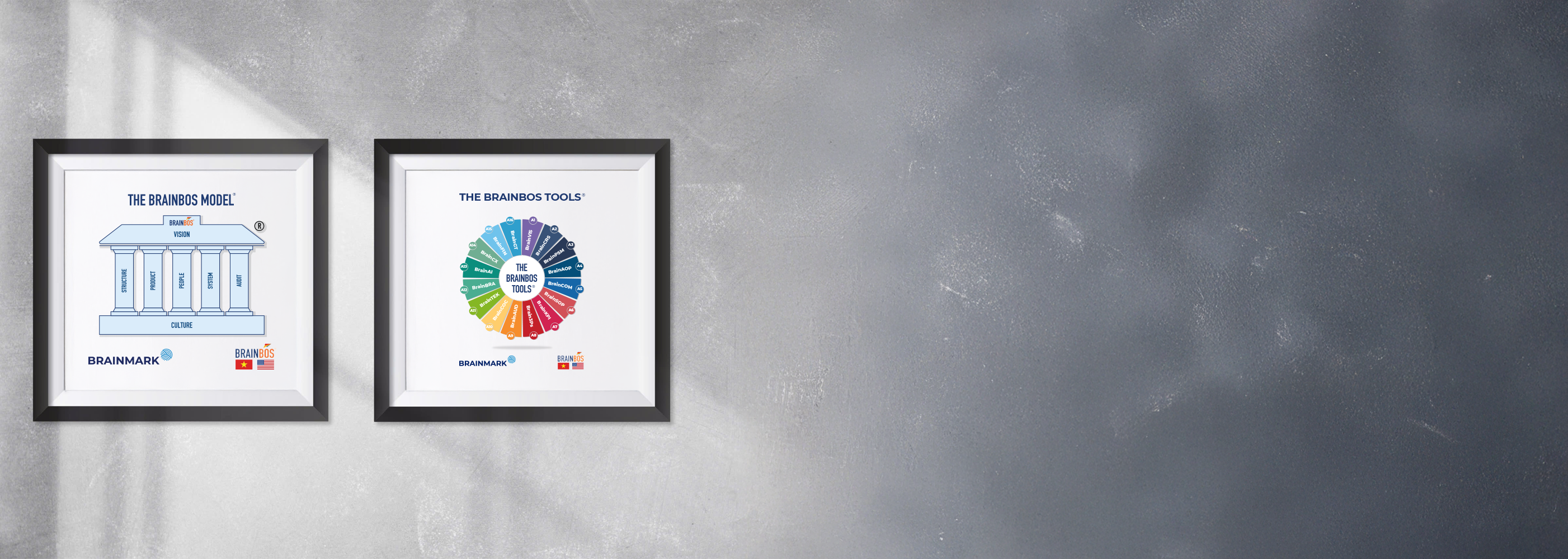 BrainBOS® (Brain Business Operating System) là mô hình quản trị tiên tiến tạo Sức mạnh tăng trưởng™ với 7 yếu tố then chốt (7 key components) và 16 công cụ (16 tools) tạo nên giá trị của một doanh nghiệp.